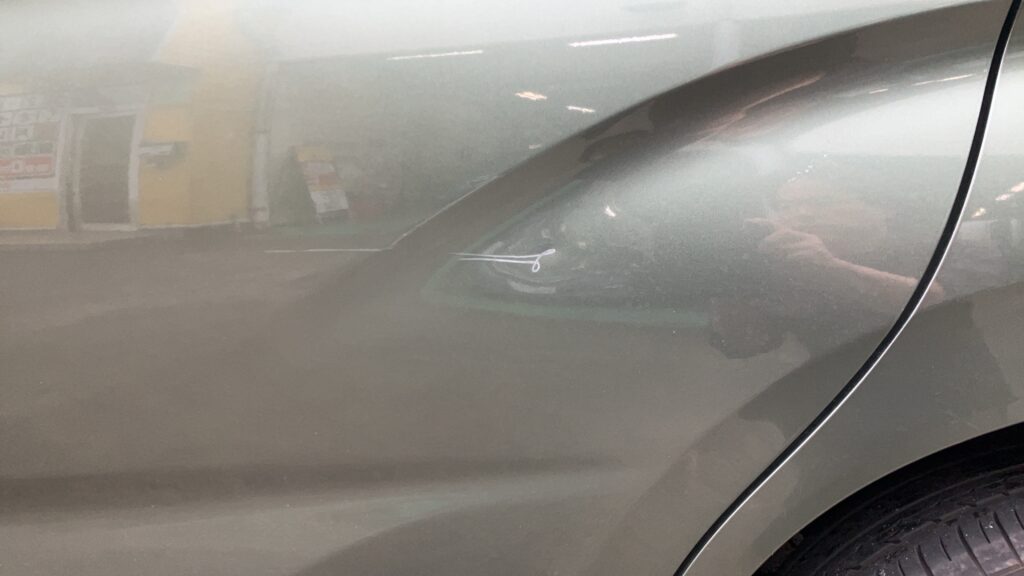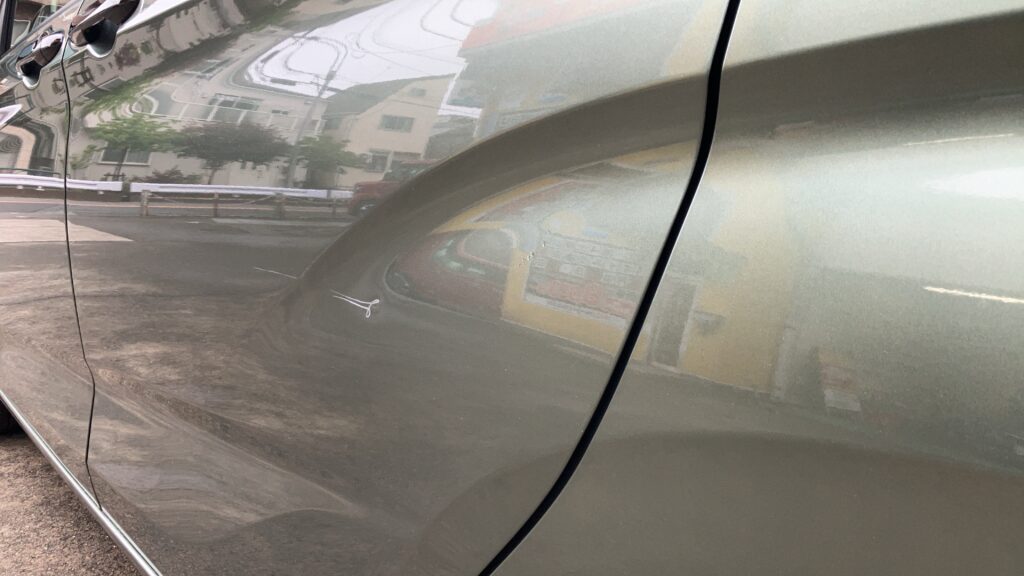 左スライドドアに凹みとすり傷ができてしまったため、