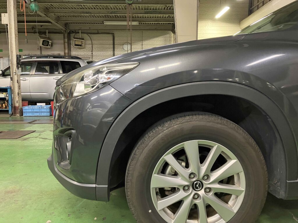 【修理実績紹介】日野市南平でマツダ CX-5のフロントバンパー・左フェンダー軽鈑金修理なら当社へ!