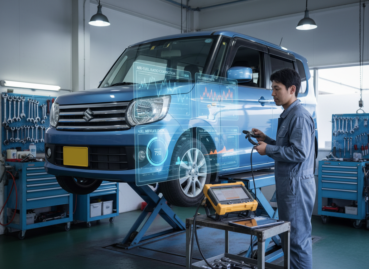 SEOキーワード:ソリオ 車検 日野市、スロットルボディ カーボン清掃、空燃比補正率 異常、吸気系清掃 東京、エンジン不調 診断、OBD点検 車検、CVTフルード交換 ソリオ、バッテリー交換 日野、ファンベルト交換、クーラント交換、ブレーキフルード交換、エアコンガスオイル補充、ドアミラーカバー交換、秀勇自動車 日野市、スズキ 車検整備、MA15S メンテナンス、エンジンオイル交換 ソリオ、排気ガステスト、燃費改善 吸気系清掃、スキャンツール診断