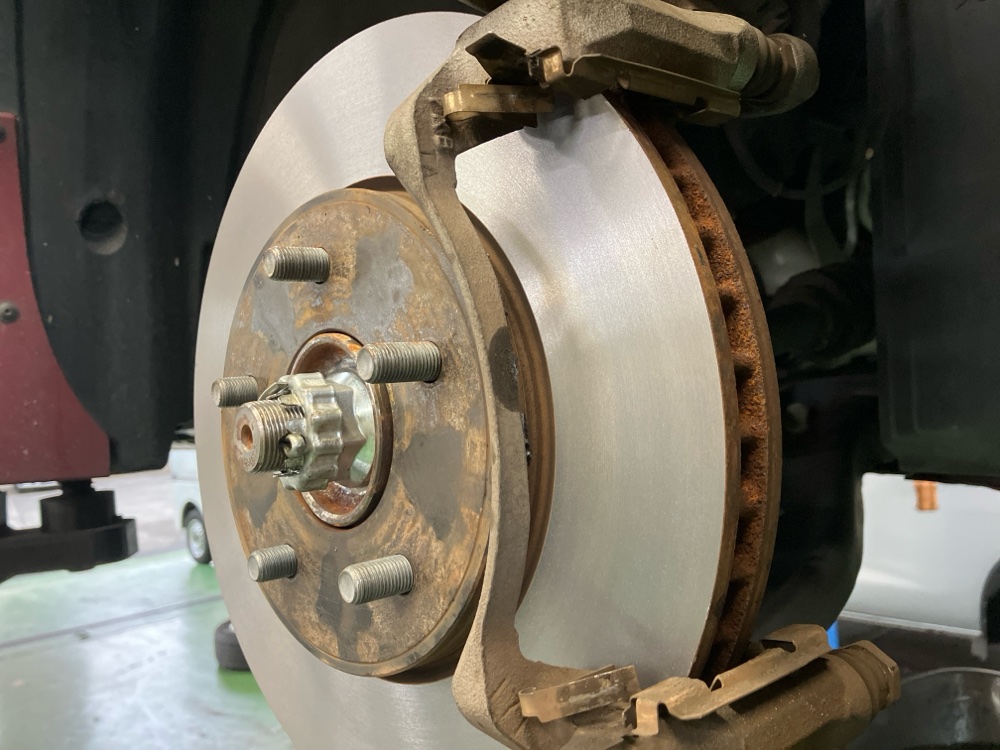 ブレーキ鳴きは、パッド交換だけでは解決しないケースも少なくありません。今回のように、ディスクローターの偏摩耗が原因となっている場合は、ローター側の修正が必要です。