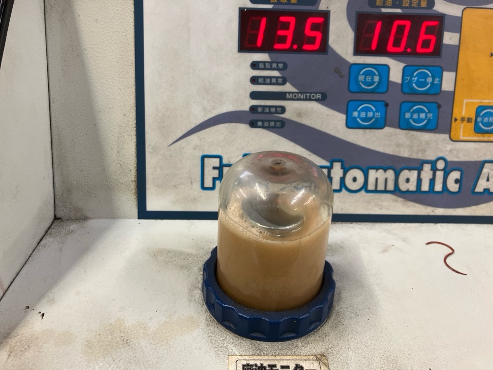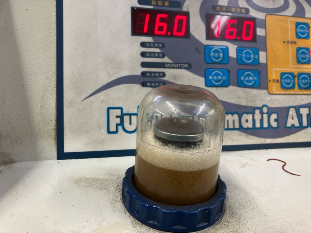 トルコン太郎内の高性能フィルターでろ過したフルード。細かな金属粉やスラッジを完全に除去し、クリーンな状態を実現しました。